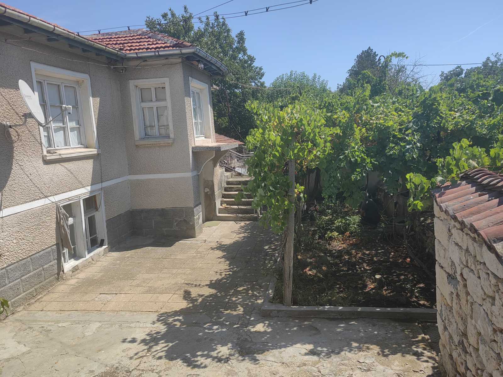 квадратура: стара къща 65 кв. м. + нова къща на груб строеж 156 кв. м. + 2,5 дка двор + пристройки